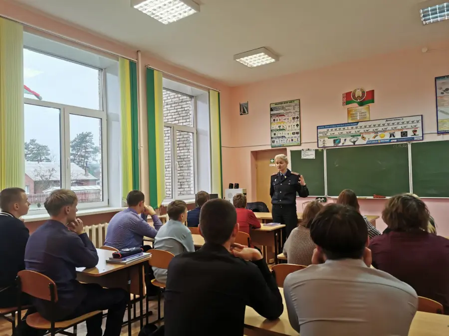 19 ноября на встрече с учащимися 8-11 классов инспектор по профилактике и пропаганде безопасности дорожного движения ОГАИ Борисовского РУВД Ирина Юрьевна Юрдакул напомнила о необходимости соблюдать ПДД, обозначать себя световозвращающими элементами, быть осторожным на пешеходном переходе.